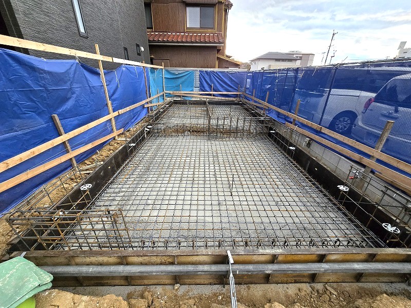 普段見る基礎より鉄筋の間隔が狭くて、素人でも「なんかいつもよりぎゅっとしてる!」と分かるほどでした。