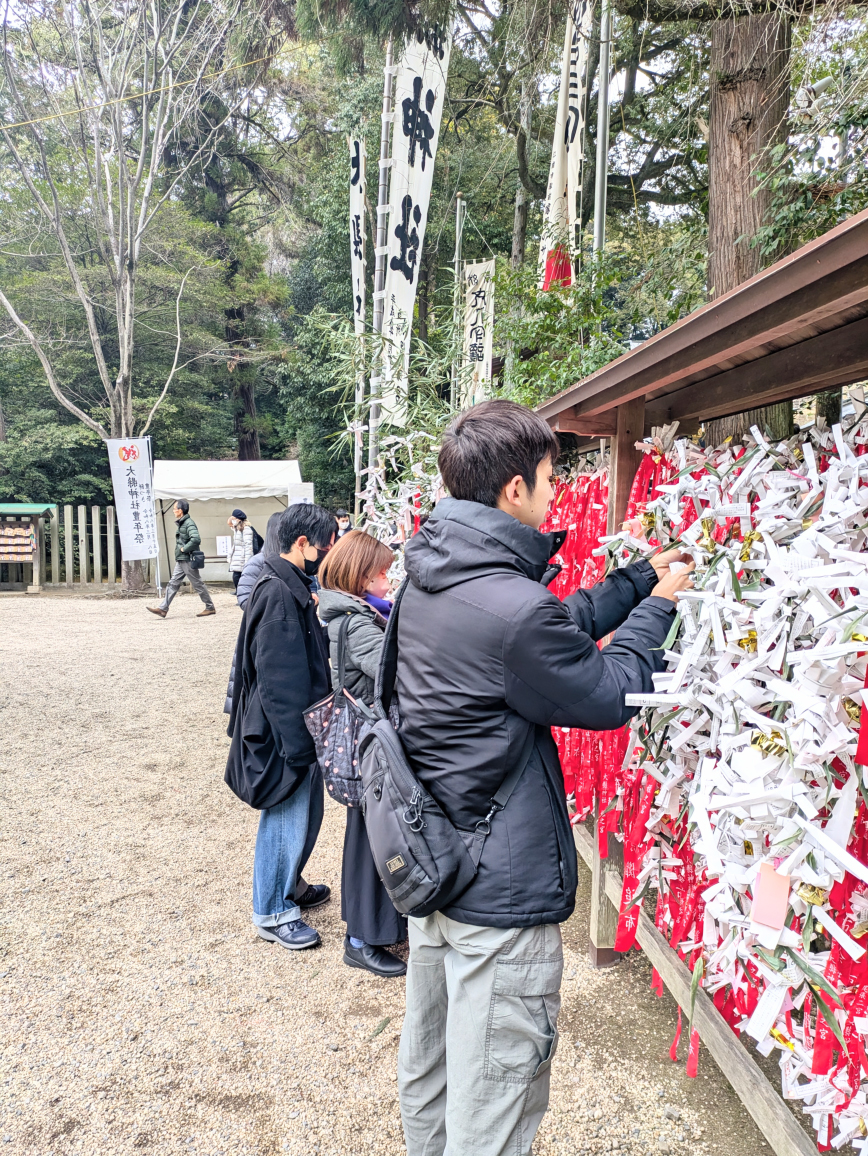 引いたあとのおみくじは、境内にあるおみくじかけに結んで、願いを託します。