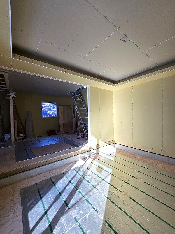 モデルハウス 家づくりレポートvol.5|断熱材充填・床暖房パネル施工