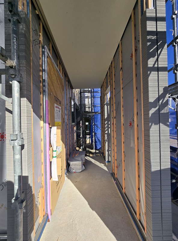 中の工事が進んでいるのを見ているつもりが、外側もちゃんと同時に進んでいて、気づけば家は内側からも外側からも、少しずつ完成に近づいている感じに!
