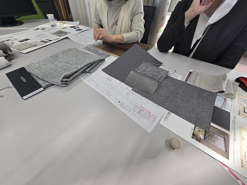 現場の工程が進んでいる間、保留になっていたカーテン決めも進めていました。年末に決めきれずに置いていた分、やっと前に進みました(*’▽’)
