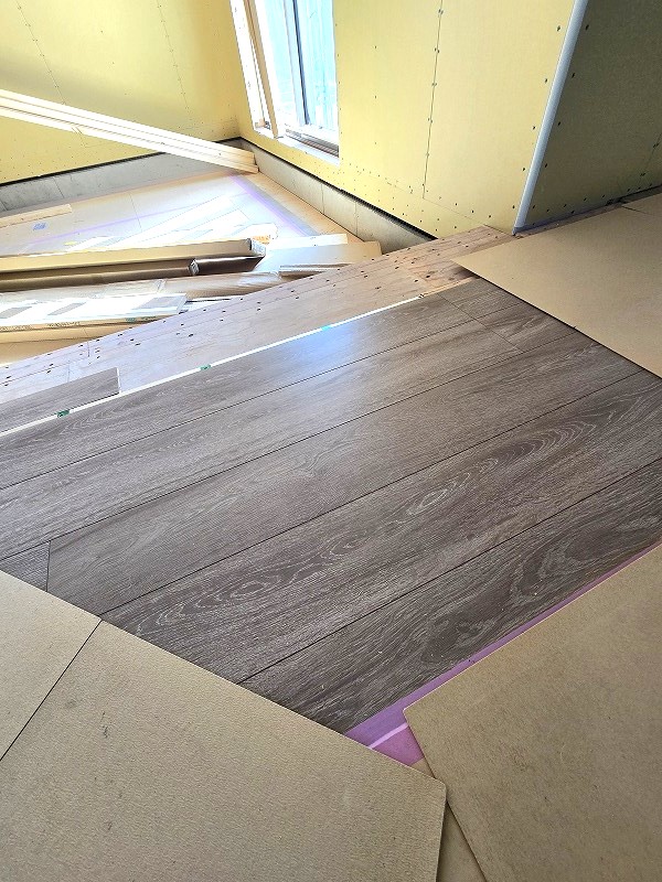 下地の状態から、少しずつ床材が並んでいって、気づけば部屋っぽくなってる!