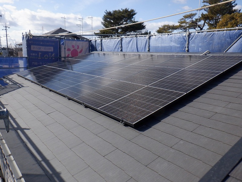 ちなみに、屋根の上では太陽光パネルの設置も進んでいました。