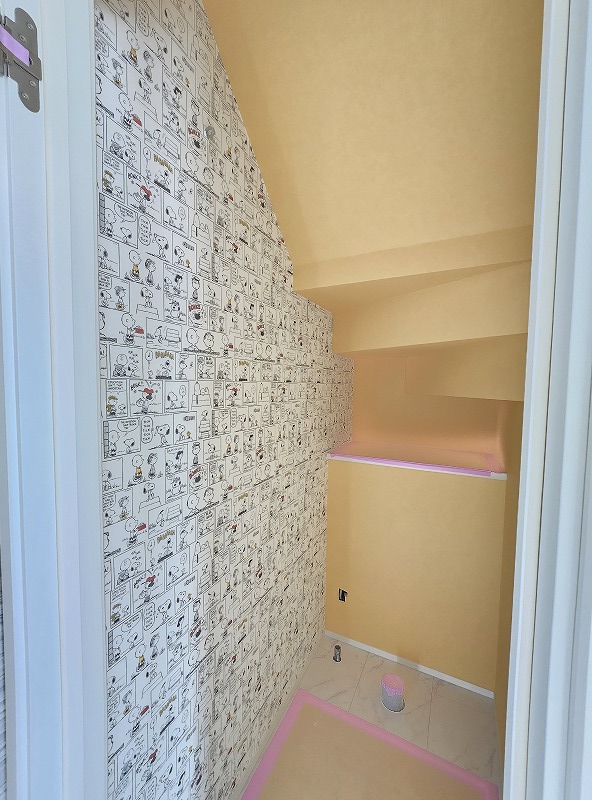 スヌーピーやプーさんのクロス、石目調のクロスなどが貼られ、それぞれに個性のある空間に仕上がっています。