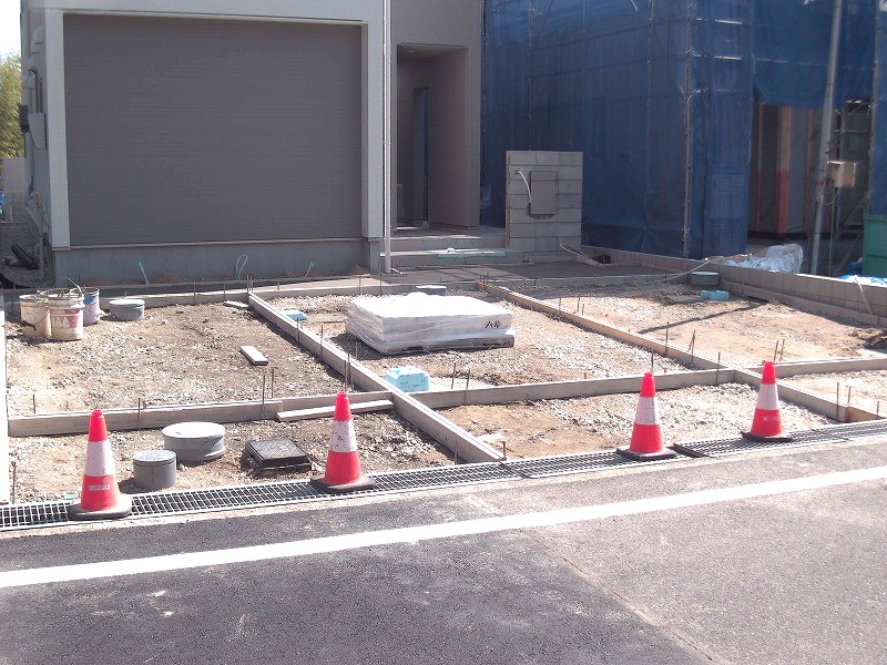 現場では、駐車場部分の掘削や残土の処理が進み、建物まわりも下地の整地や砂利敷きが行われていました。