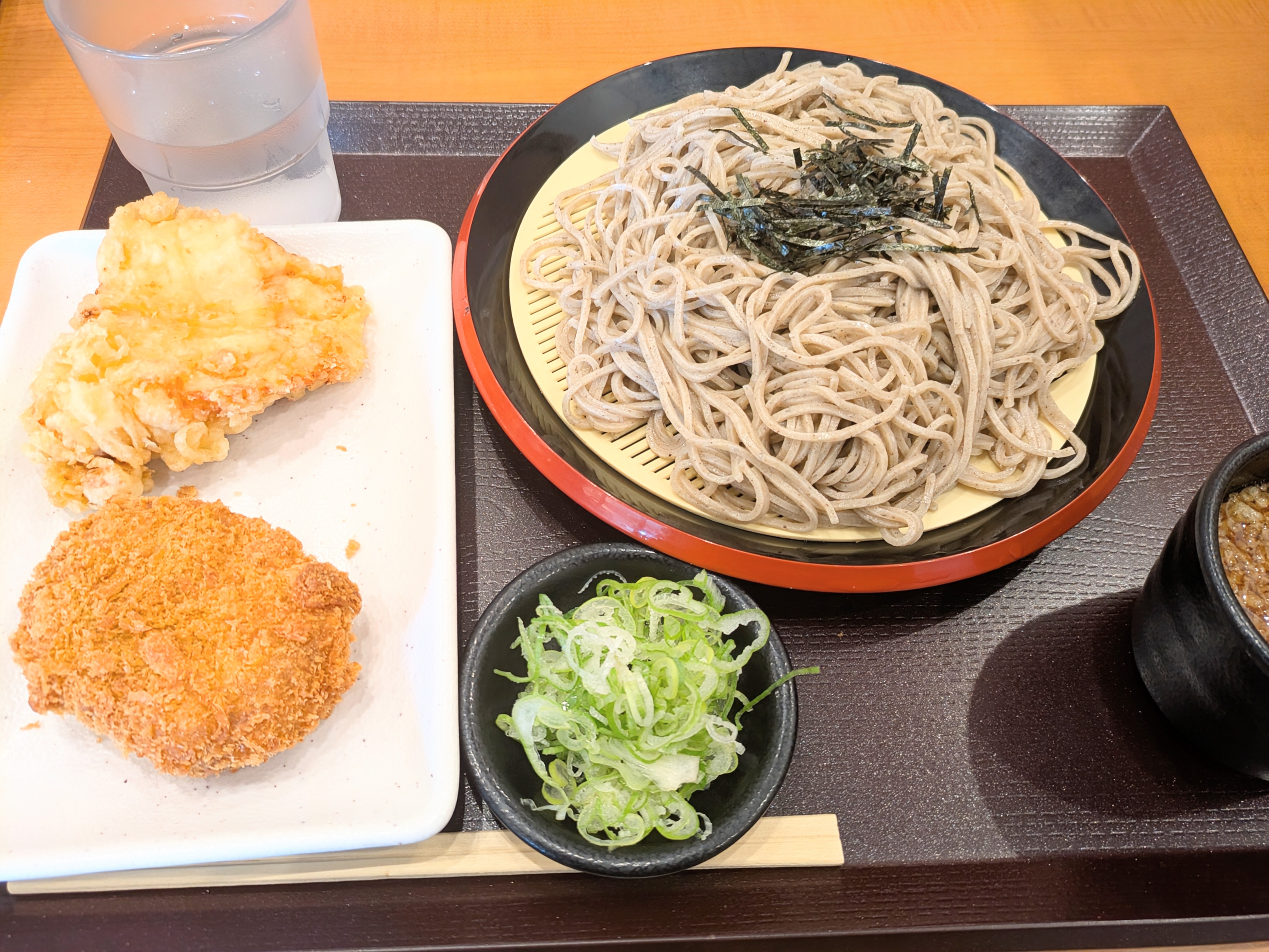 ざるそば(大盛り)+かしわ天+コロッケ