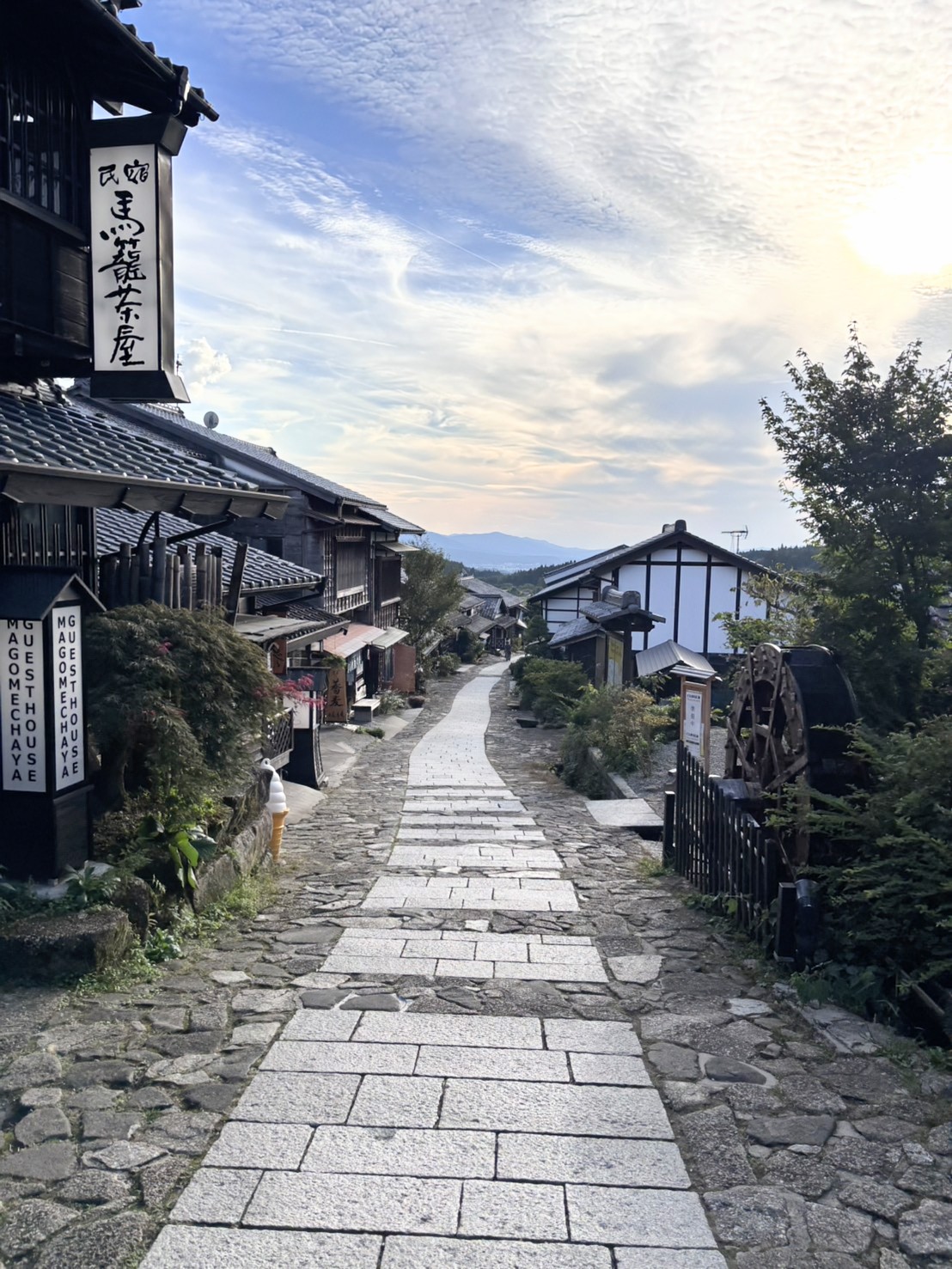 夕方の柔らかな光に包まれた宿場町の風景は、まるで時間が止まったようでした。