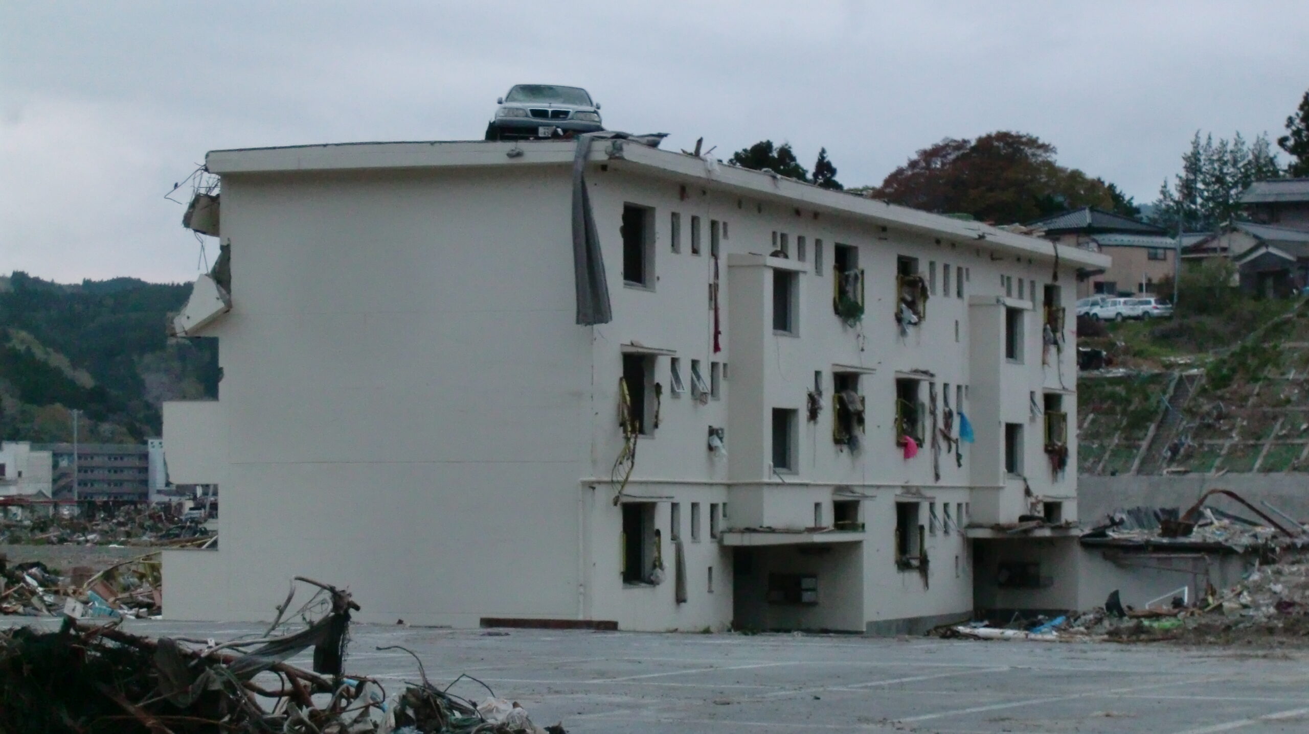 沿岸部の建物は基礎だけの状態で、津波の破壊力凄まじさ感じました。