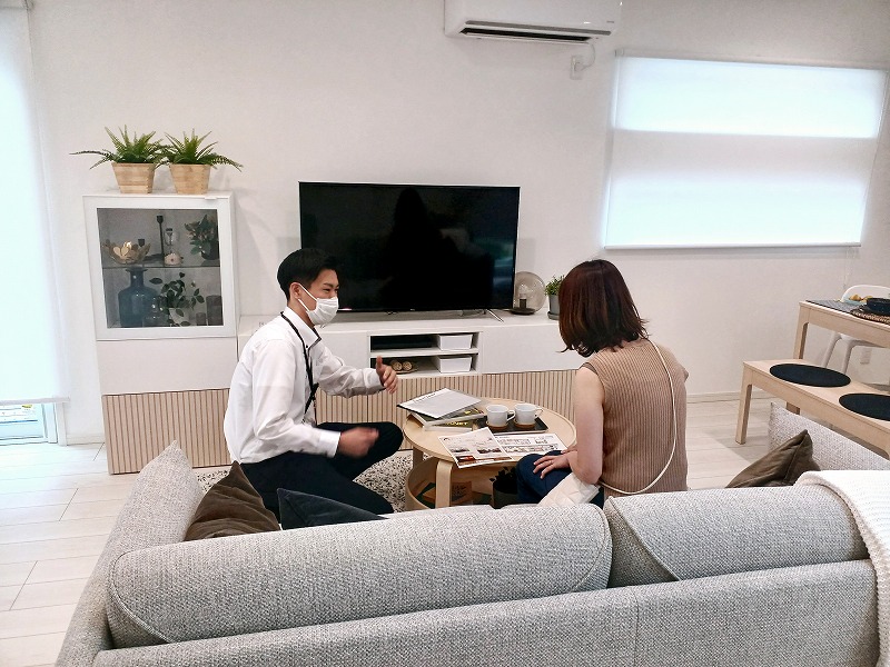 A:ずばり“アットホーム”。まるでスタッフの方全員が家族のような感じです。営業担当の方はお父さんのような雰囲気。ご自身のお家のこともたくさん話してくださり、参考になりました。設計の方は私の好みをよく理解した上で提案してくれ、わがままにもとことん付き合ってくれる兄妹のような感じでした。打ち合わせで伺ったときには、毎回笑顔で迎えてくださるお母さんのような雰囲気の方が案内してくださいます。