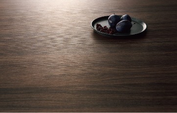 「あたたかみを感じる手ざわりと繊細な質感が、木目柄に自然な奥行きをもたらす」
