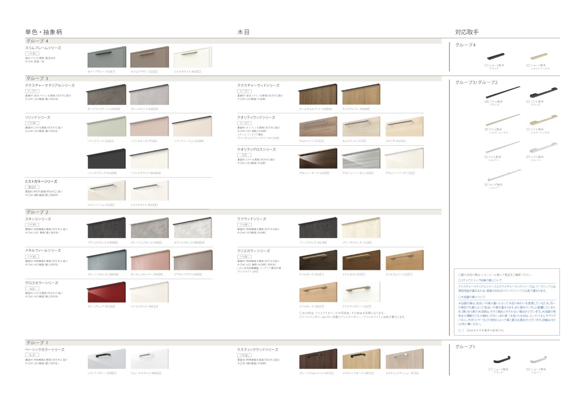 さらに、取手もショート取手、スリム取手、ロング取手、ミドル取手などがあり、ブラック、シルバー、シャインニッケルなどの色から組み合わせることができます。