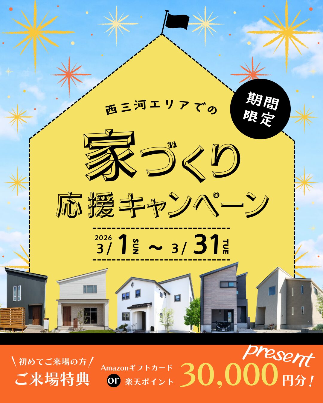 そんな方に、太陽ハウジングでは、3月1日(日)~31日(火)の期間限定で、西三河エリアでの家づくり応援キャンペーンを開催します!