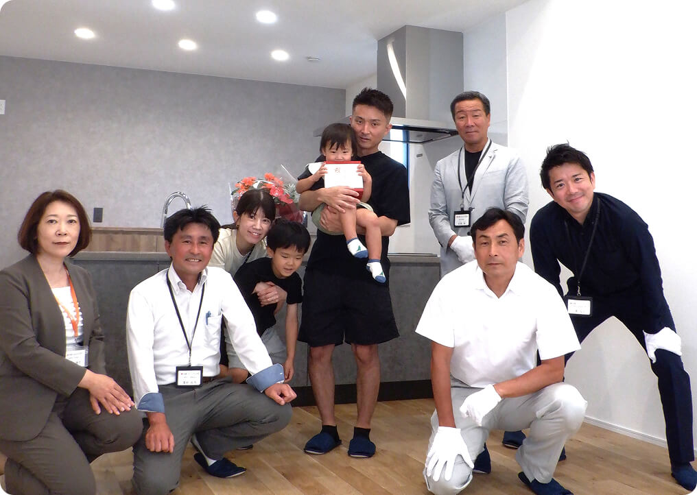 お引渡しの日には、ささやかなセレモニーでお祝いさせていただきます。太陽ハウジングにとって、お引渡しはお客さまとの新たなお付き合いのスタートです。
