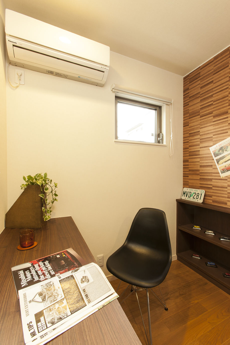 玄関ホール横のフリースペースでは好きな雑誌や小物をならべたり、大人の休み時間を満喫。
