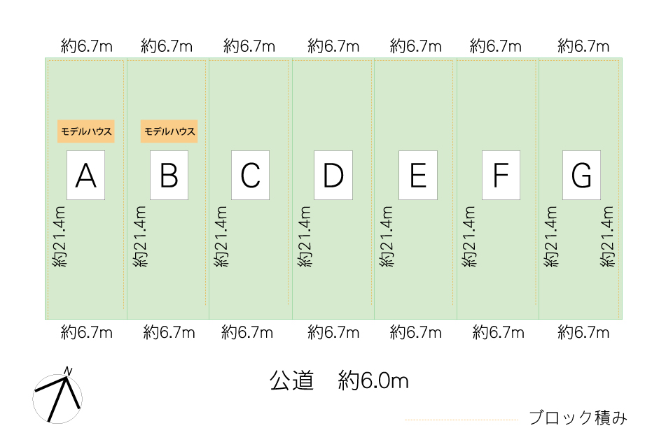 全7区画すべてが南向き道路に面しており、陽当たりの良さが魅力。モデルハウスも完成したので、ご見学も可能です。
