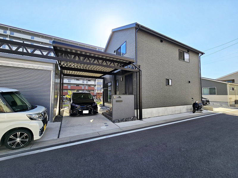 ガレージを最優先に考えるご主人と、モノトーンの内装や家事効率を大切にする奥さま。はっきりとした役割分担のもと、土地探しから住まいづくりが始まりました。